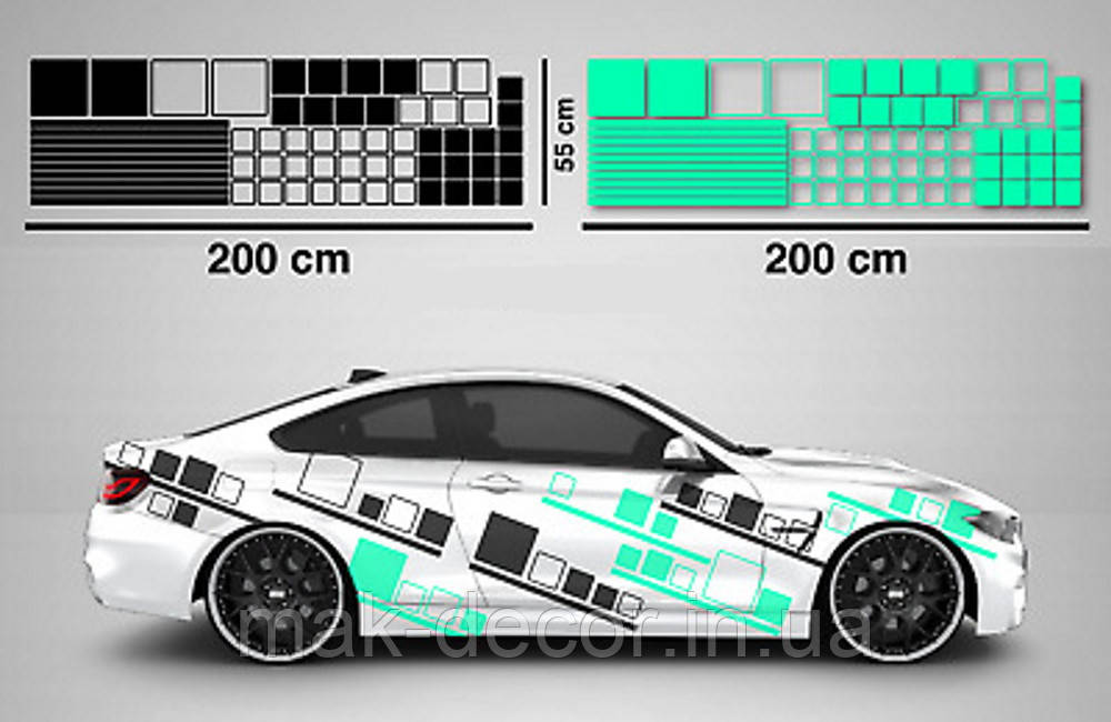 Вінілові наклейки на авто " Квадрат + смуги " 55х100 см 4 листа